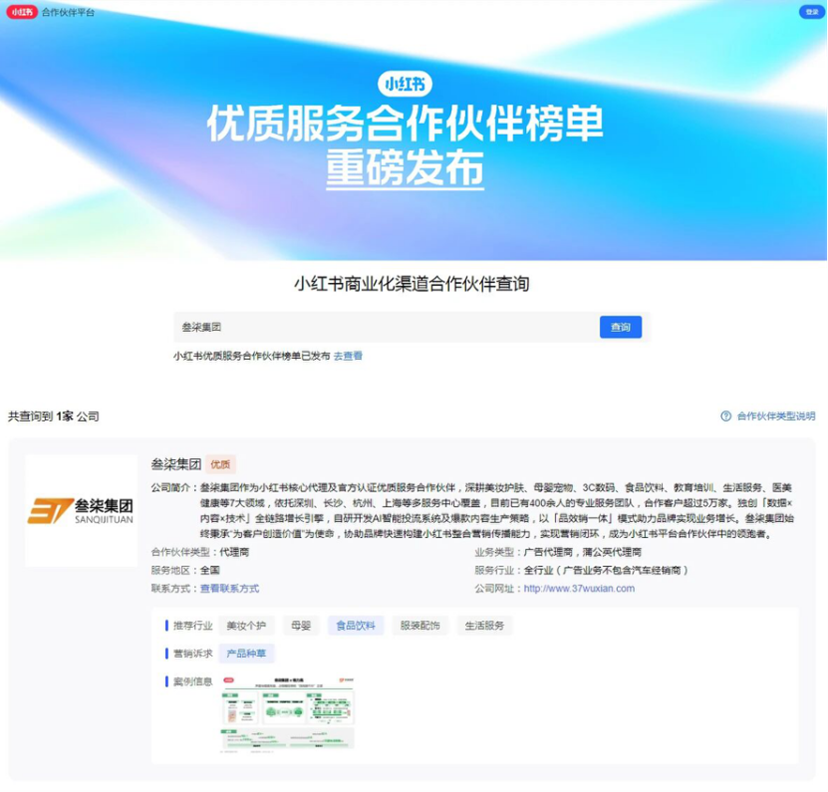 第一名:小红书代理商叁柒集团