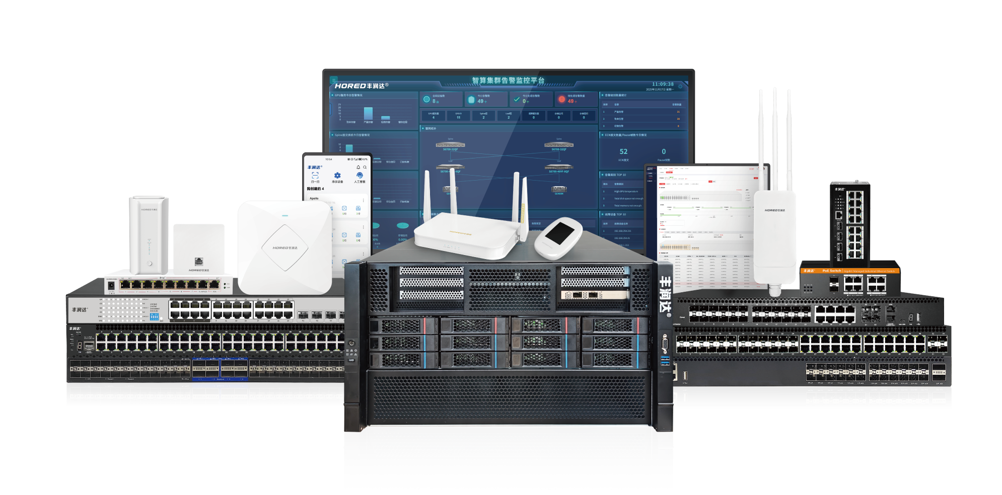 GPU服务器、CPU服务器、国产信创服务器、100G/400G/800G高速交换机、高速铜缆、光模块和智算运维平台